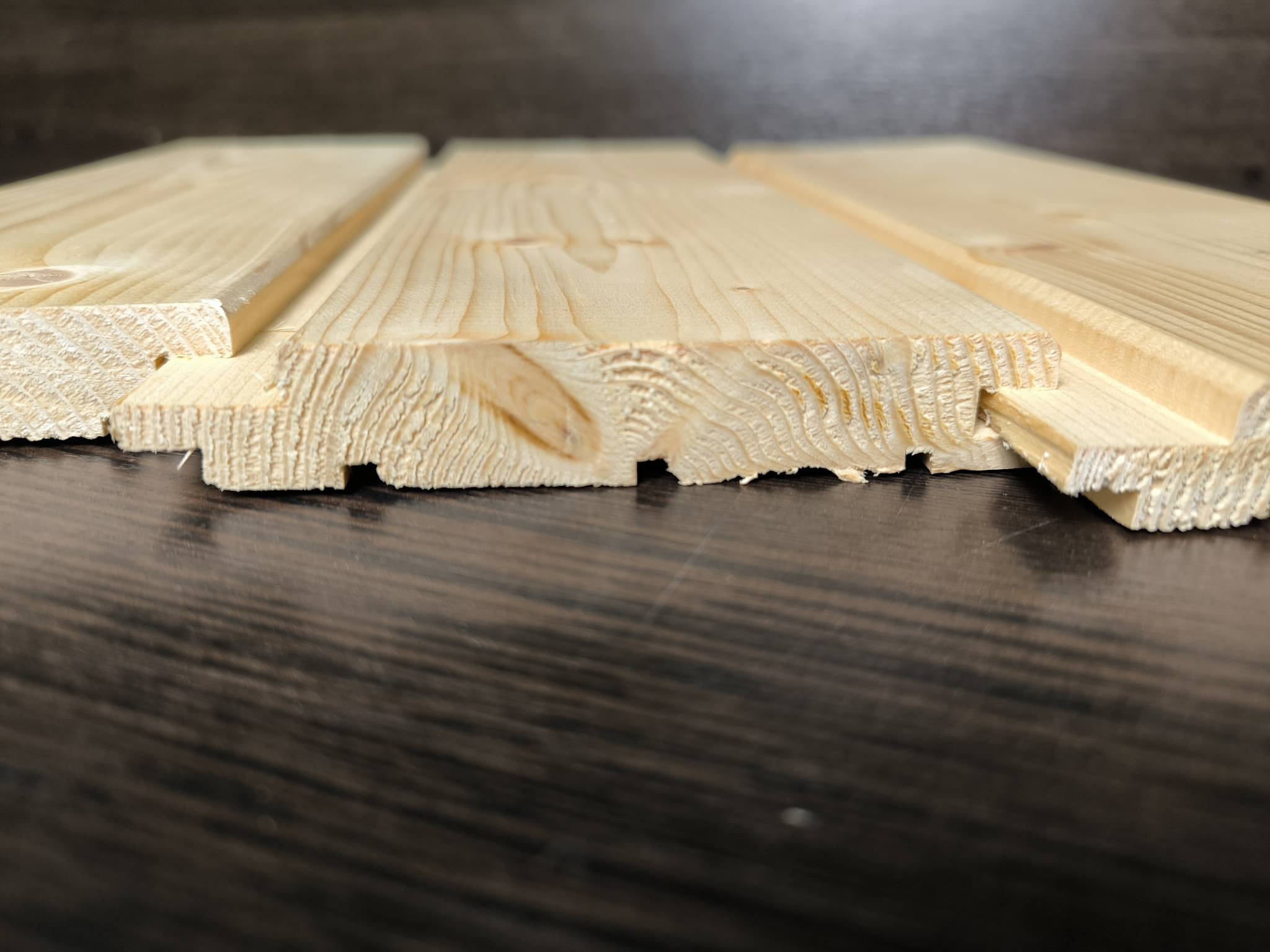 Финский профиль — это вид доски с увеличенной длиной шипа и специального паза на лицевой стороне. Преимущество данного профиля доски заключается в пазе, который сделан на лицевой стороне доски, при пересыхании данный паз визуально исправляет линию стыкования досок. Увеличенная длина шипа так же при сильном пересыхании не дает материалу рассохнуться до образование щели между досками. Данная доска особенно подходит для отделки потолков, а так же стен. Толщина доски в 20мм придает стабильности конструкции и исключает коробление