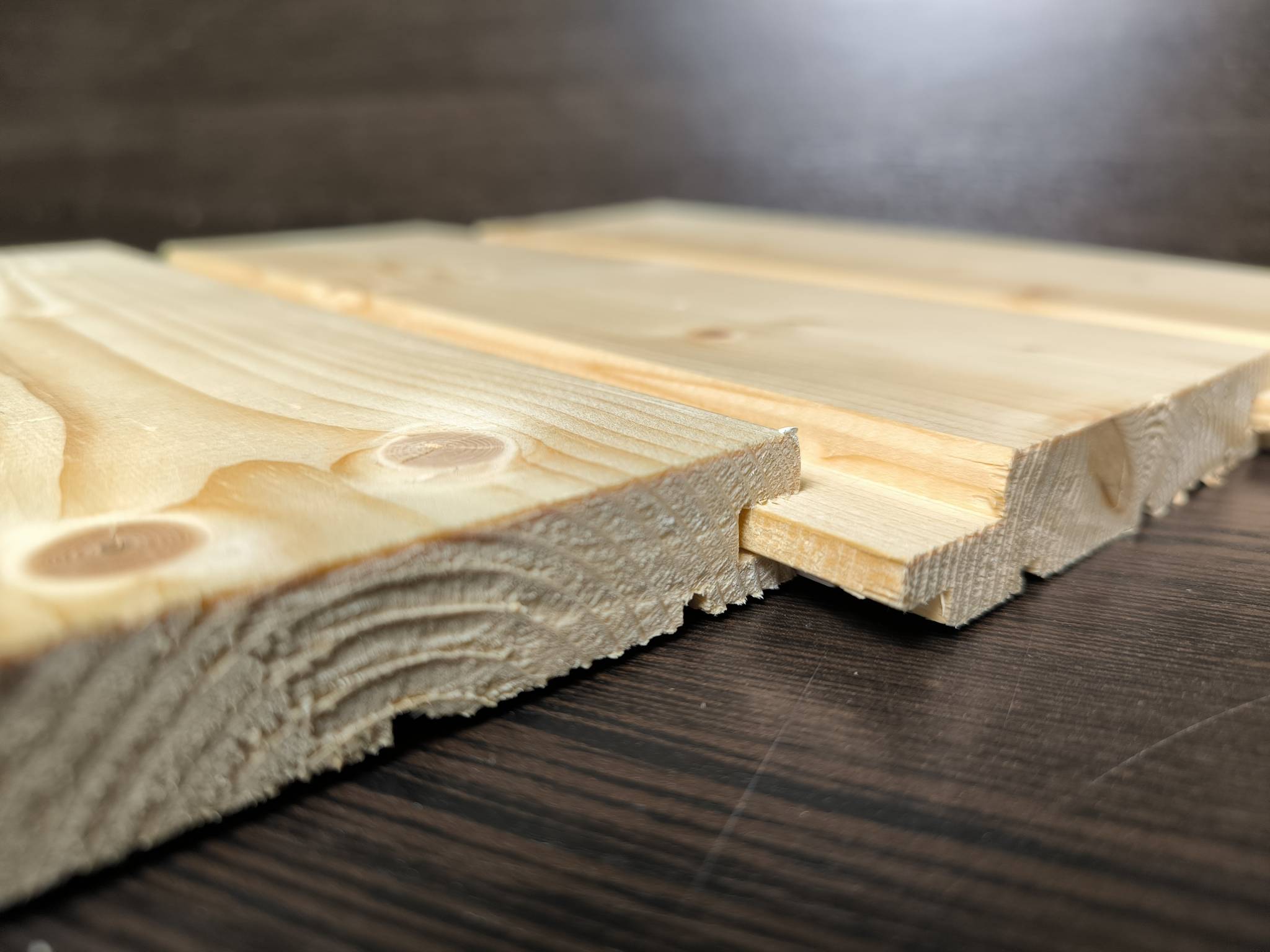 Финский профиль — это вид доски с увеличенной длиной шипа и специального паза на лицевой стороне. Преимущество данного профиля доски заключается в пазе, который сделан на лицевой стороне доски, при пересыхании данный паз визуально исправляет линию стыкования досок. Увеличенная длина шипа так же при сильном пересыхании не дает материалу рассохнуться до образование щели между досками. Данная доска особенно подходит для отделки потолков, а так же стен. Толщина доски в 20мм придает стабильности конструкции и исключает коробление